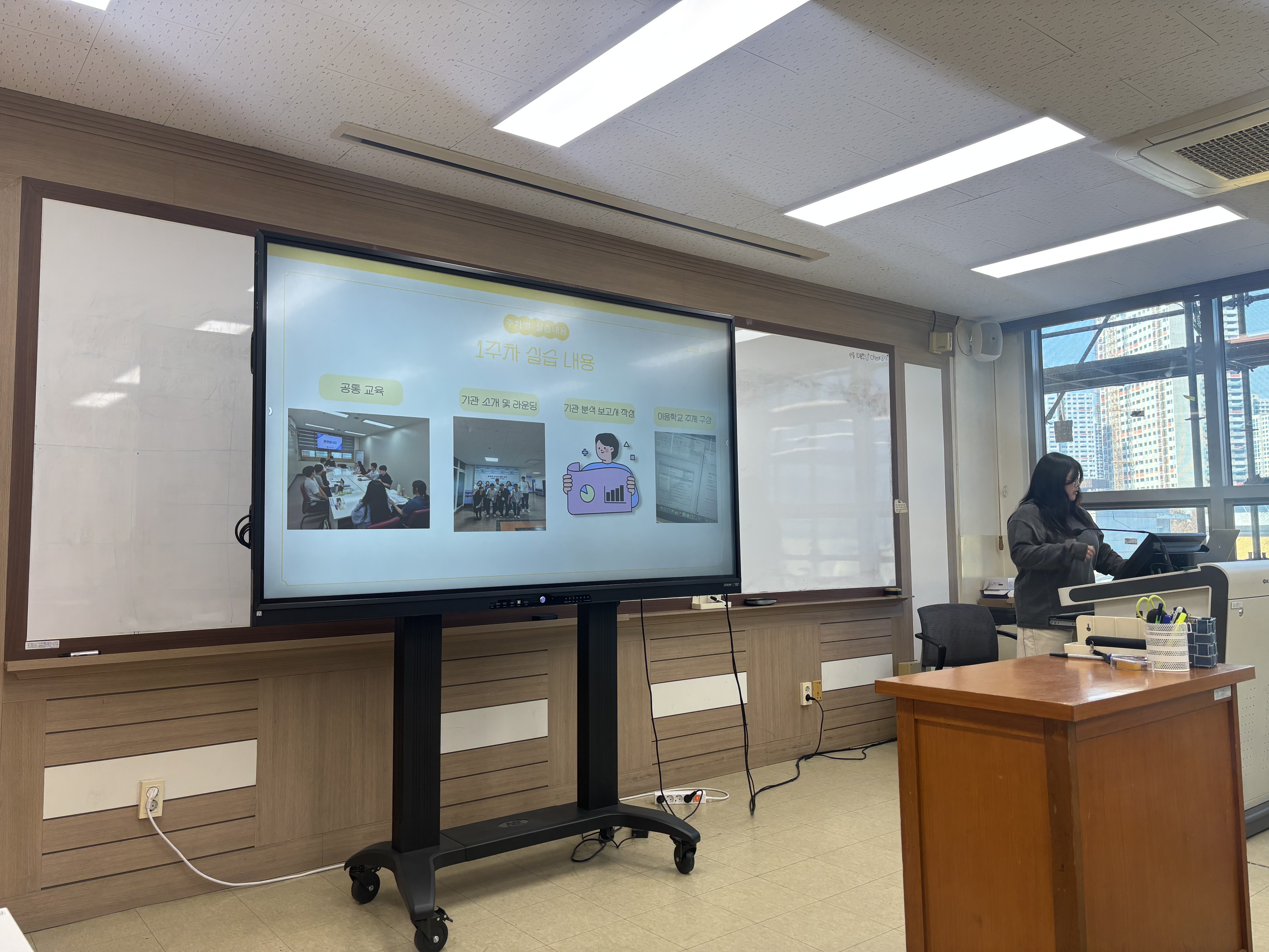 그리고 실습 과정에서의 성찰을 중심으로 발표가 이루어졌습니다. 학생들은 종합사회복지관, 노인복지관, 장애인복지시설, 지역아동센터, 청소년수련관 등 다양한 기관에서의 경험을 구체적으로 소개하였습니다.