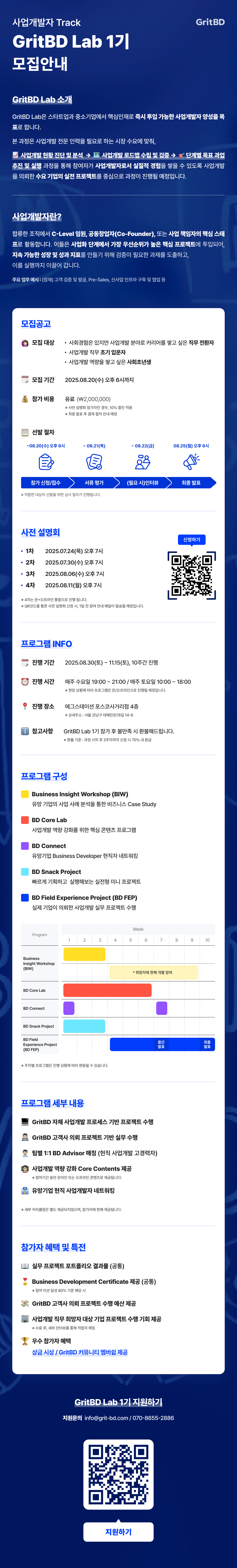 fnctId=bbs,fnctNo=597 페이지 공유 글번호 87649 [외부프로그램] [그릿비디] 사업개발자 양성과정 작성일 2025.08.08 수정일 2025.08.08 작성자 학생·취업과 조회수 187 첨부파일 첨부파일이(가) 없습니다.